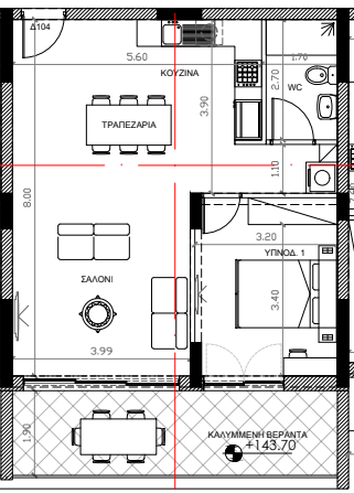 A modern one-bedroom apartment situated in a quiet residential area of Agios Athanasios.