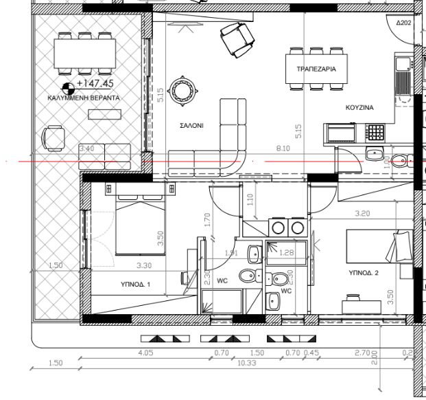 A modern two-bedroom apartment situated in a quiet residential area of Agios Athanasios.