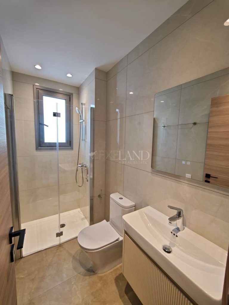 Modern 2-bedroom apartment located in the central area of Agios Ioannis, close to all amenities and main city routes. Situated on the 4th floor of a brand-new residential building.The internal area is 86 sq.m plus 20 sq.m covered veranda. It consists of an open-plan kitchen connected with a living and dining area, two bedrooms both en-suite with bathrooms and a guest toilet. The apartment features high ceilings, double-glazed doors and windows, split air-conditioning units in all rooms, and a pressurized water system. A storage room is also included.