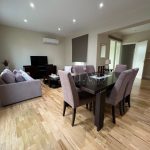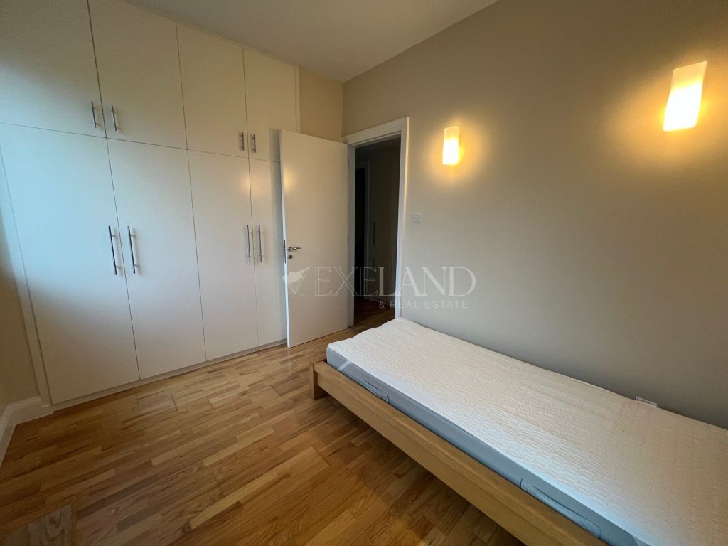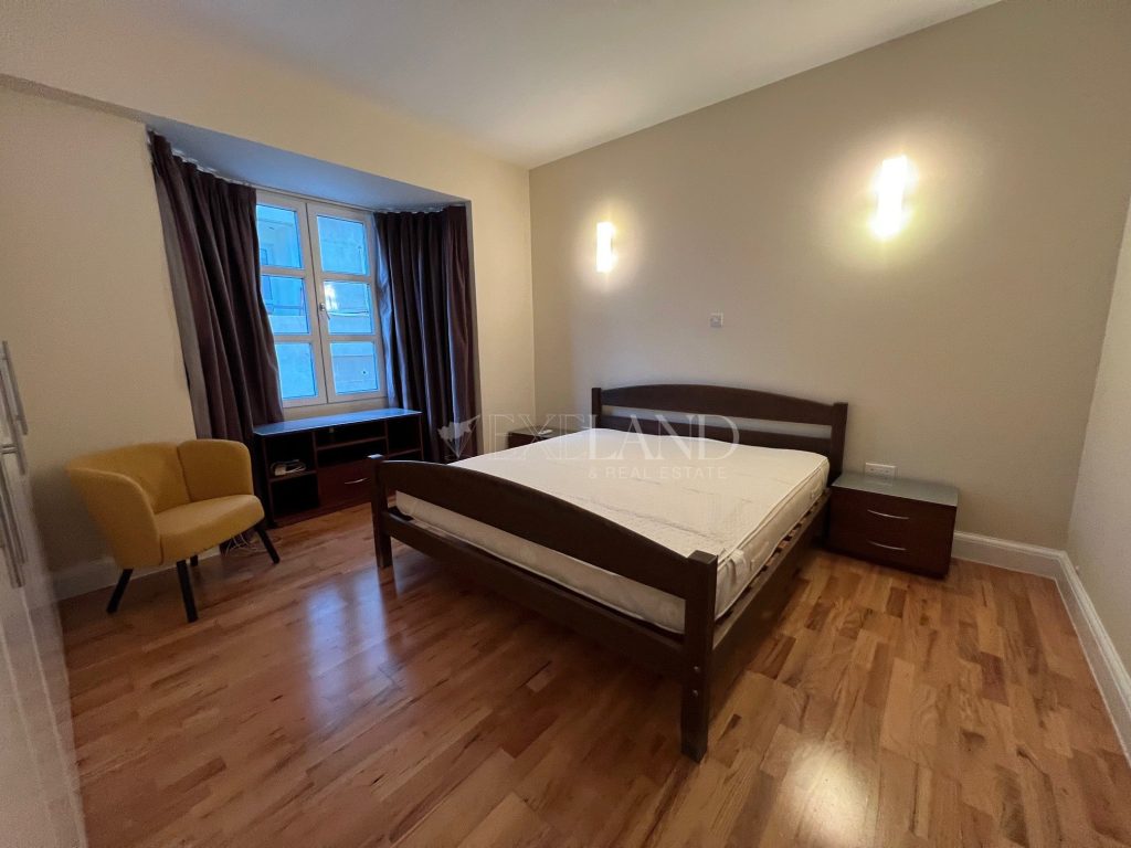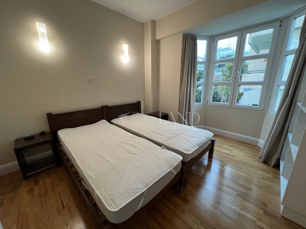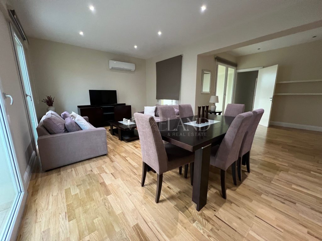 Spacious three-bedroom apartment with a city views located in the city center, close to Makariou Avenue and within walking distance to amenities. Internal area is 112 sq. m + 9 sq. m covered terrace and 5 sq. m uncovered balcony. it consists of an entrance area, separate kitchen, spacious living room with a dining area, three bedrooms (master bedroom en-suite with a shower) and family bathroom. It is available furnished and equipped, with air conditions, double-glazed windows with thermo and sound insulation, natural parquet, intercom system with camera, solar panels for hot water, underground parking and storage.