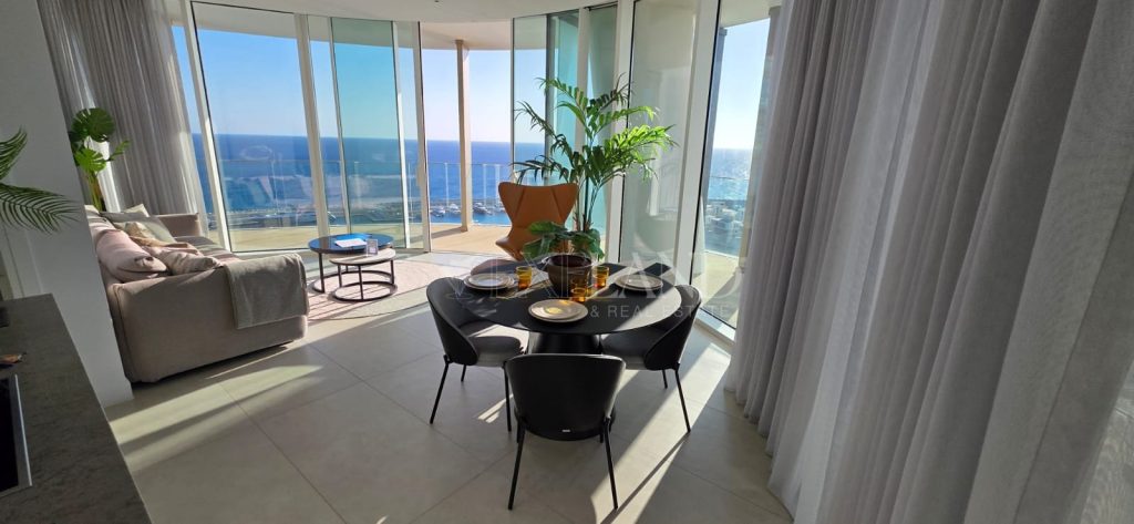 Spacious 3-bedroom apartment located on the 14th floor of Ayia Napa Marina, offering panoramic views over the marina and the Mediterranean Sea, within one of the most exclusive waterfront locations in Cyprus.
