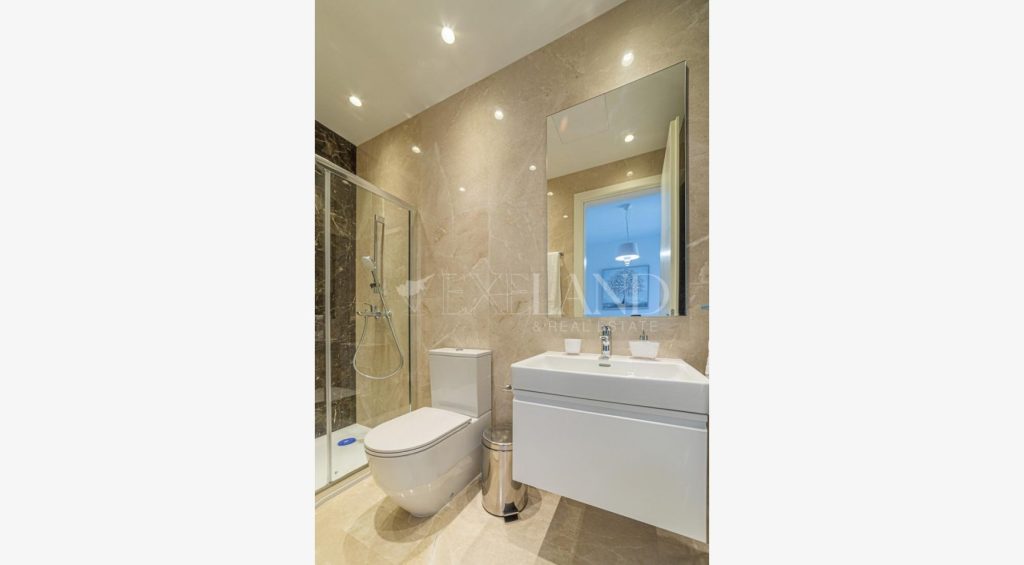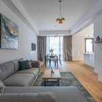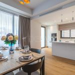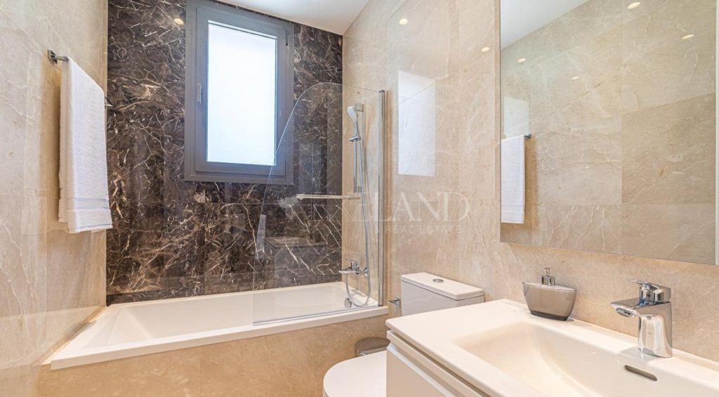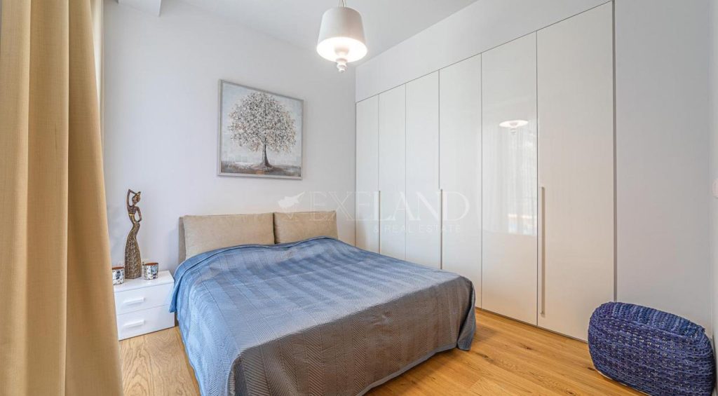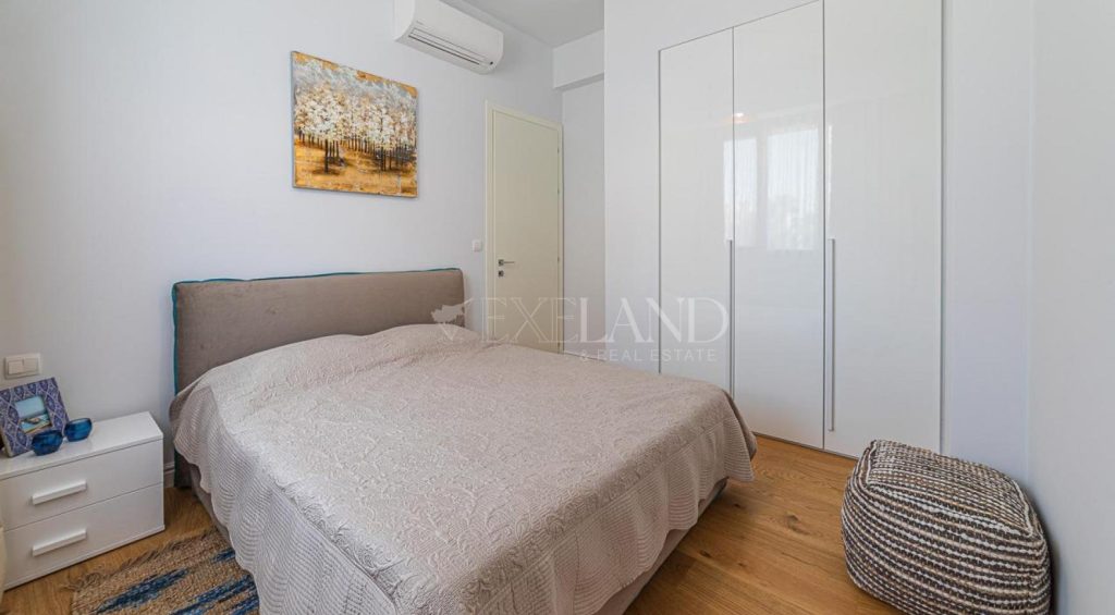 The apartment features an open-plan kitchen and living area, a main bathroom plus an en-suite shower, underfloor heating, and a VRV air-conditioning system throughout. It is fully furnished and fully equipped with high-quality electrical appliances, kitchen utensils, bed linen, towels, and everything needed for immediate move-in.