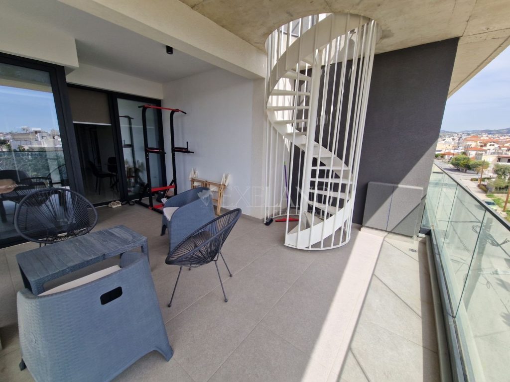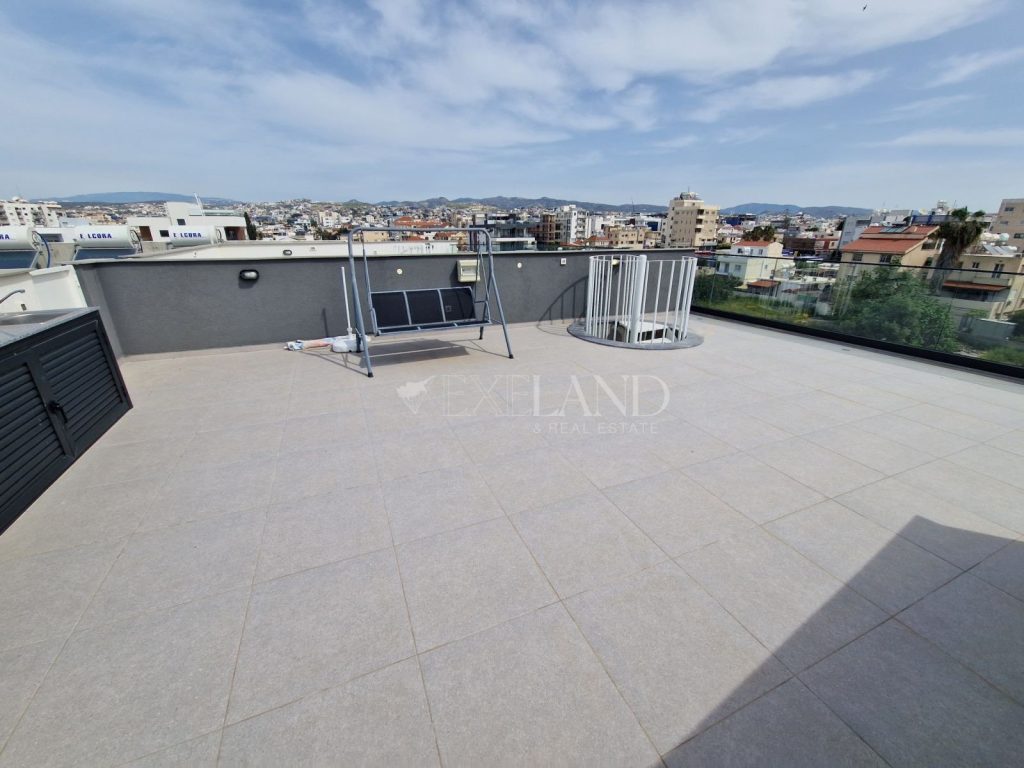 Modern two-bedroom penthouse with a city and sea views located in Petrou Kai Pavlou area in the city center, close to ERA Apollon and to Makariou Avenue. The internal covered area is 76 sq. m + covered veranda 22 sq. m and roof garden 60 sq. m. It consists of an open-plan kitchen connected with a dining and living area, two bedrooms, shower and guest WC. It is fully furnished and equipped, with air condition units, double-glazed windows, solar panels for hot water, covered parking and storage room. The building has only 8 apartments and electric gates with remote control.