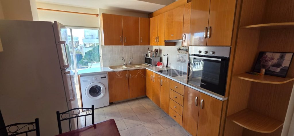 The layout consists of a living area, a separate fully fitted kitchen with appliances, two bedrooms and one bathroom. The apartment is fully furnished and ready for immediate occupancy. Situated in a well-established residential building, the property benefits from generous room sizes typical of the area, making it a practical and comfortable option for long-term living.