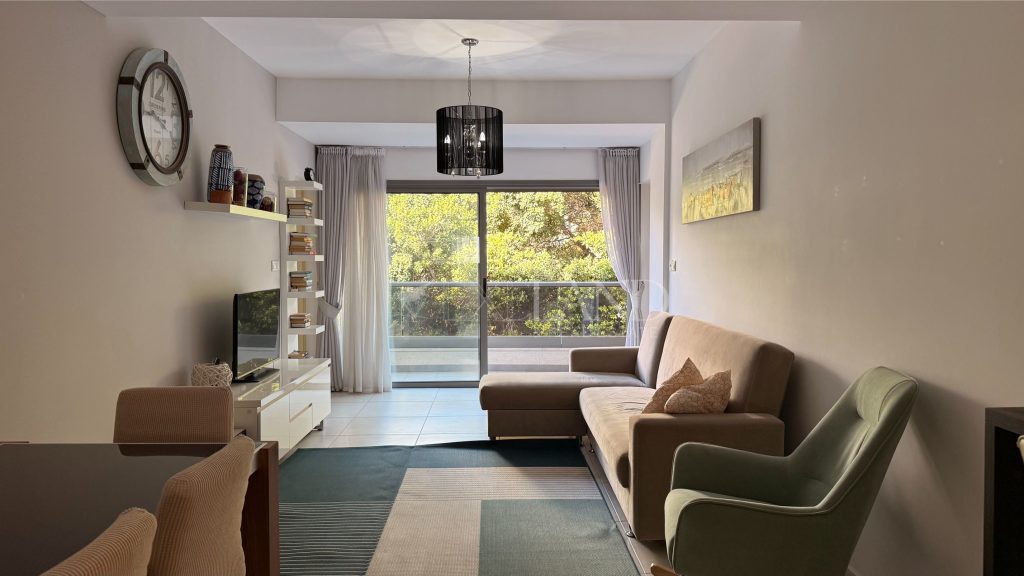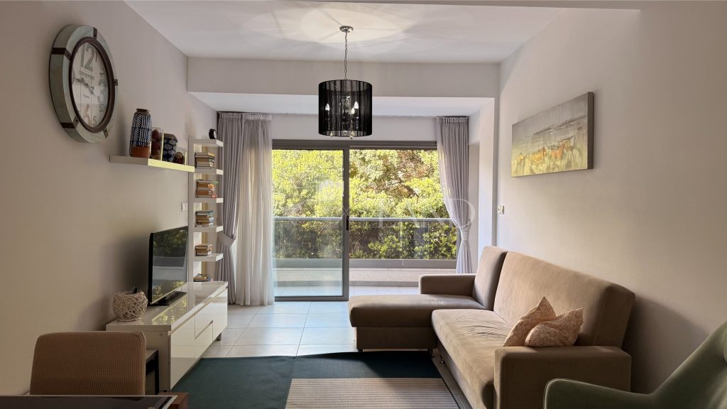 Located in a prime coastal area, Germasogeia, only 150 meters from the beach and within walking distance to ICON, this 2-bedroom apartment situated on the first floor, the apartment features 84 sq.m. of covered internal area and a spacious 14 sq.m. covered veranda overlooking lush trees, creating a peaceful and private outdoor setting.