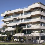 The complex features a large outdoor swimming pool with a barbecue area, a gym, as well as parking spaces and storage rooms for each apartment.