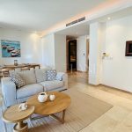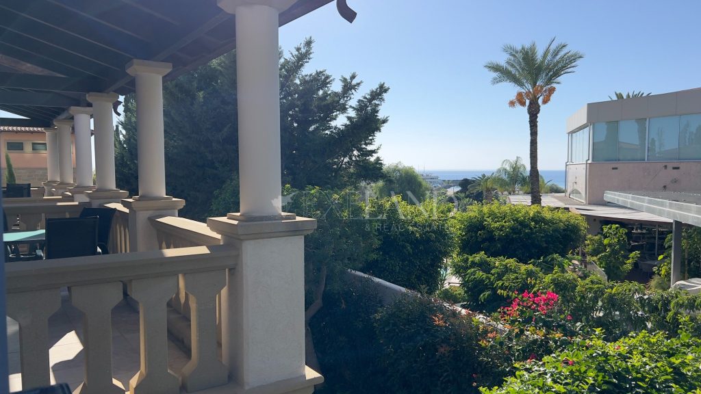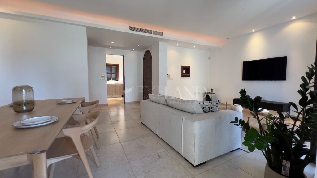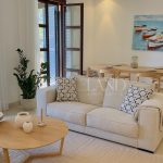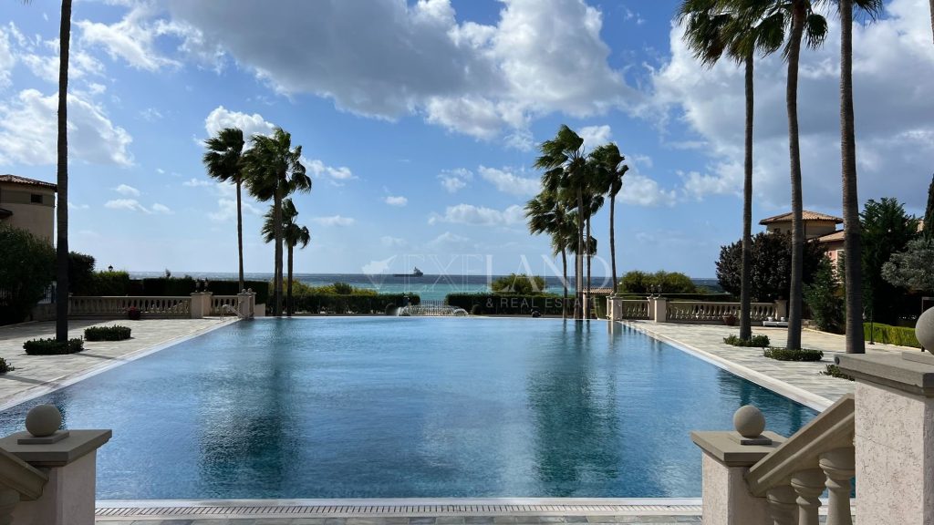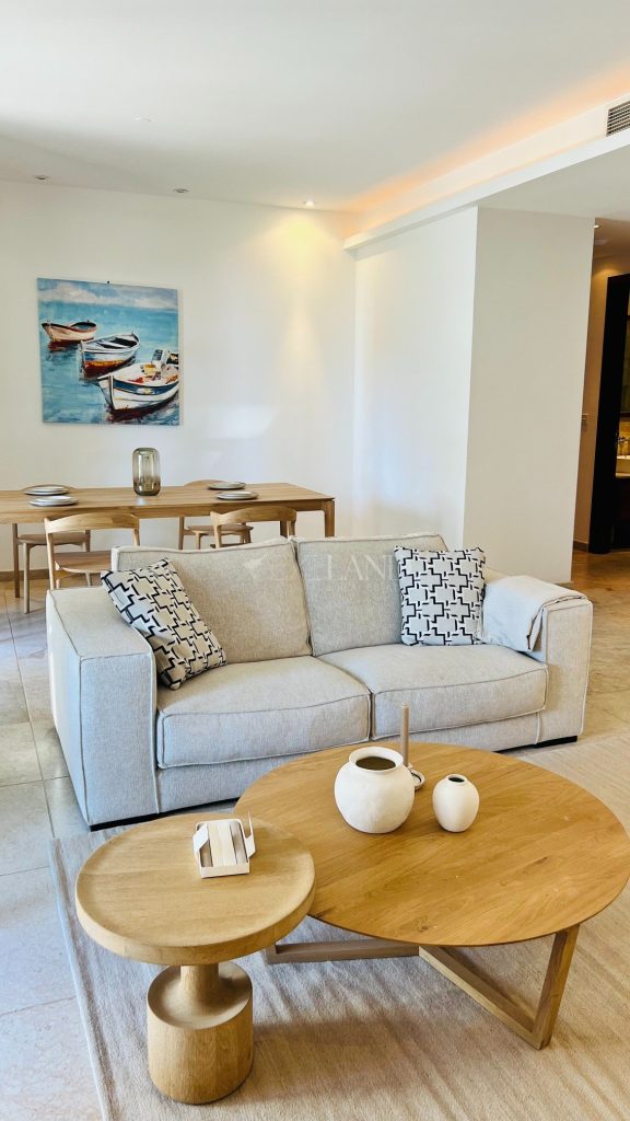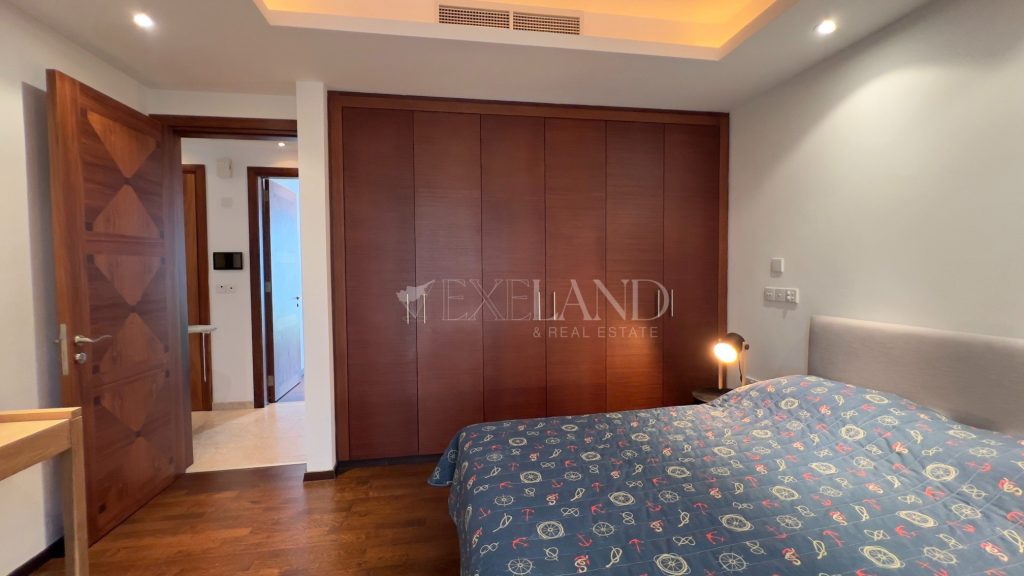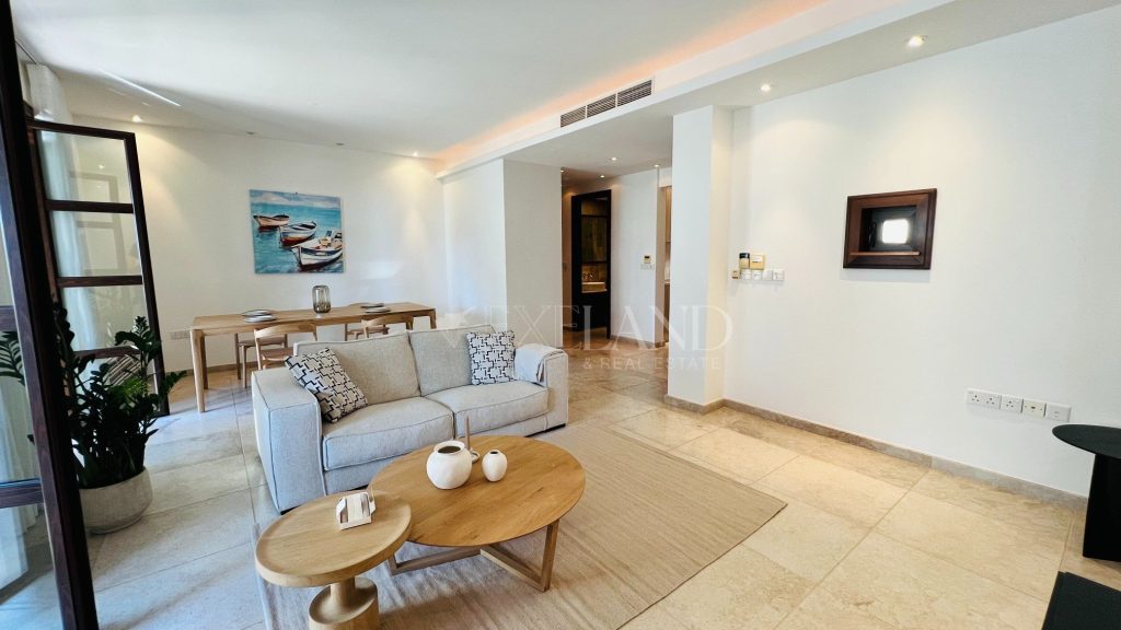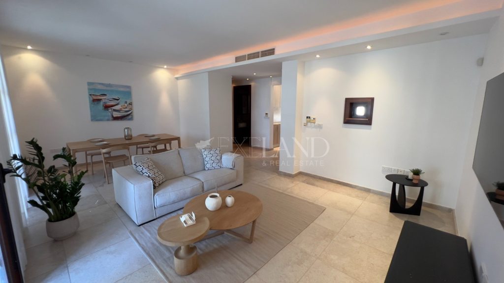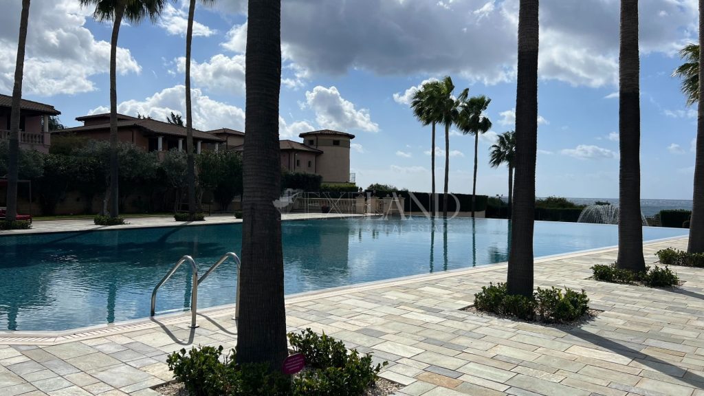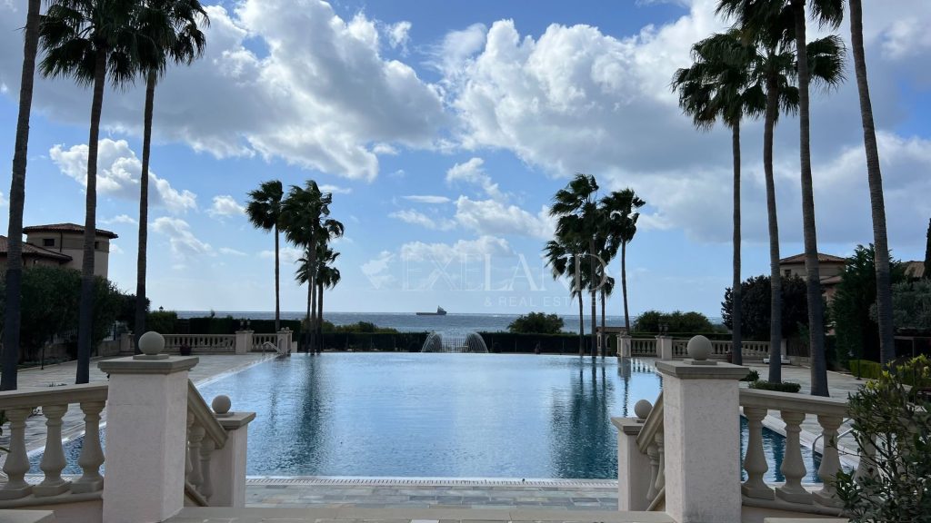The first line, gorgeous 2-bedroom apartment is located in the most impressive gated complex near the beach-The Residence complex. The complex itself has security 24/7, a large swimming pool, a gym area, private access to the beach, and beautiful, well-maintained mature gardens. The apartment is located 100 meters from the Mediterranean Sea. The covered area is 102sq.m, covered veranda is 13sq.m and uncovered veranda is 3sq.m. The property is fully furnished and equipped with electrical appliances and has 2 bathrooms (1 ensuite with the bathtub and the shower and a second bathroom with just the shower), 2 spacious bedrooms with built-in wardrobes, a living room and dining areas, a separate kitchen, and windows (manual) shutters. Water pressure system and VRV air-conditioning system (hot/cold). Title deeds are available.