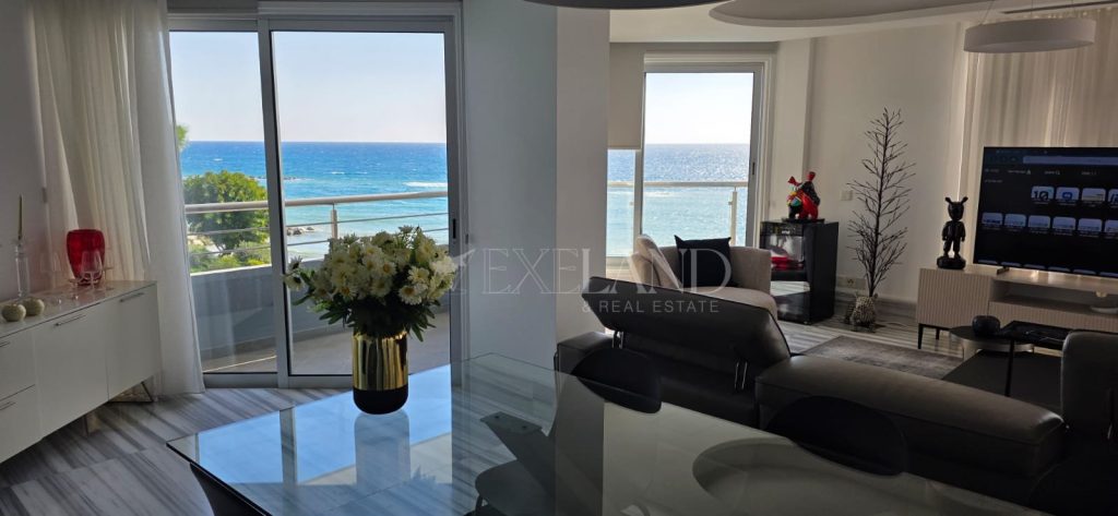 Spacious three- bedroom seafront apartment with direct sea view located in a gated complex next to Miramare hotel in Potamos Germasogeia, walking distance to all kind of amenities. The covered area 183 sq. m + 33 sq. m covered verandas.