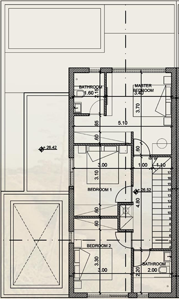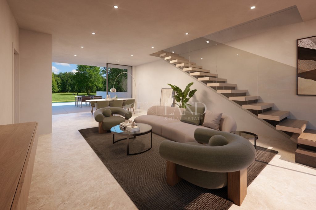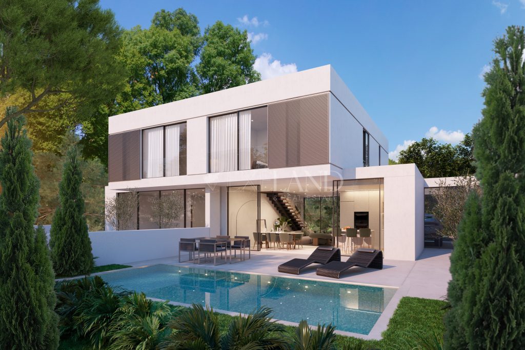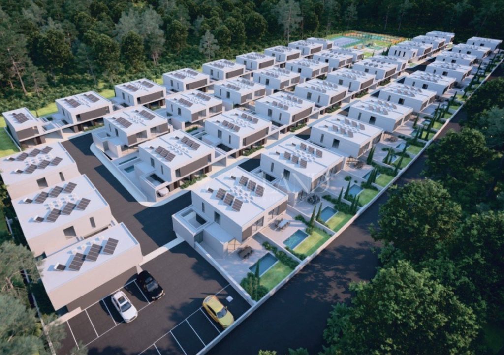 The villa has an optional swimming pool and is part of a complex with a communal children's playground and a tennis court.