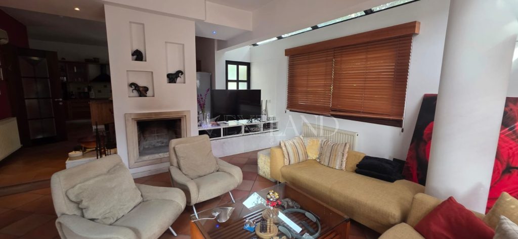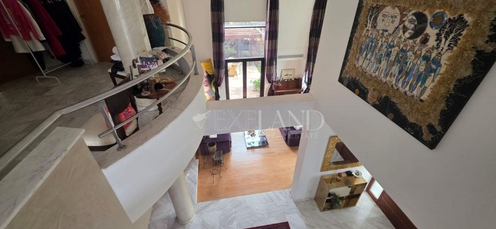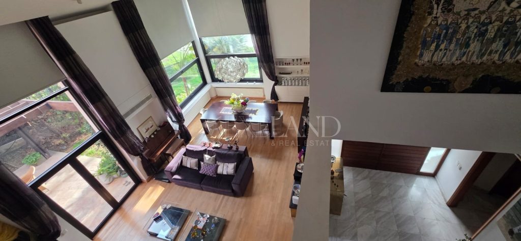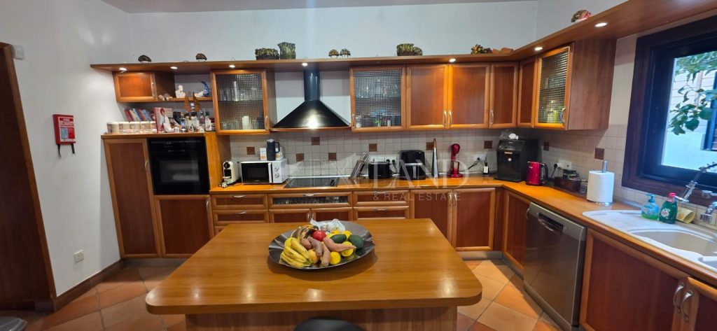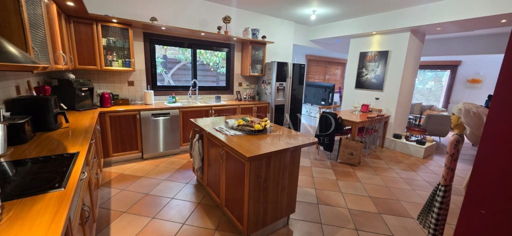Spacious four-bedroom house in Columbia–Linopetra, Limassol, with a side facing a small public park. Located in an established residential area, known for its developed infrastructure, easy access to main roads, and everyday conveniences such as shops, cafés, pharmacies, and public transport. The house offers approximately 300 m² of covered internal area, plus a 100 m² basement, and an 80 m² uncovered veranda with garden, on a 582 m² plot. Ground floor: living and dining area, separate kitchen with sitting area and fireplace, one additional room, guest toilet, and storage. First floor: three bedrooms including a master with en-suite bathroom and walk-in wardrobe, two bedrooms sharing a bathroom, corridor with built-in storage, and small kitchenette. Basement: storage, service room with bathroom and kitchenette, and enclosed underground parking for two cars. Equipped with central heating, air conditioning in all rooms. Final approval permit issued.