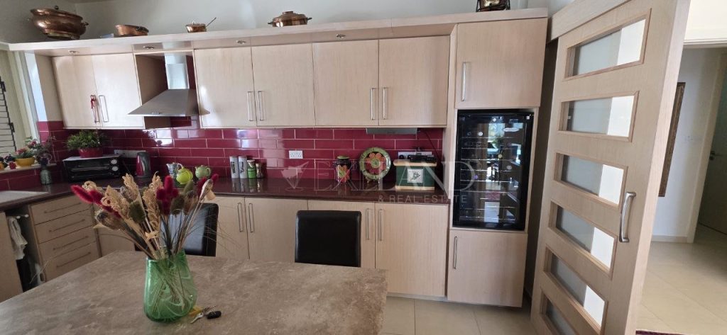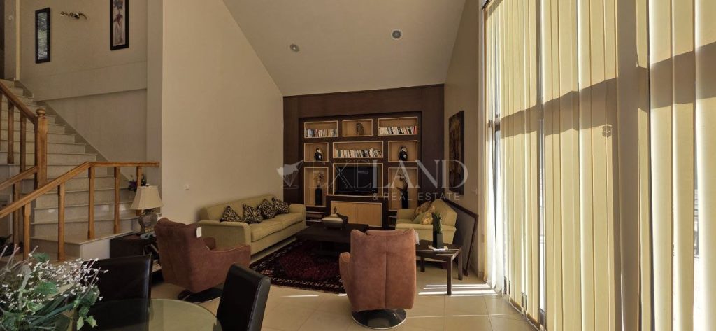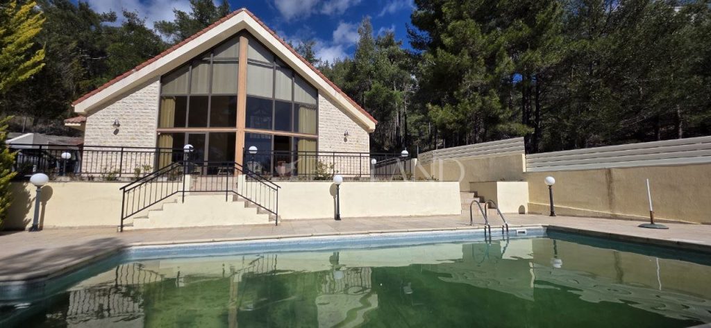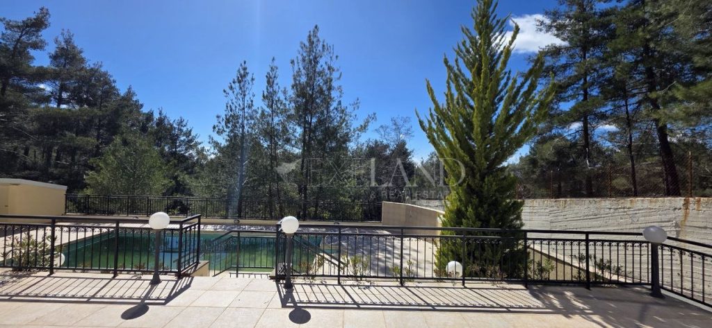 Spacious three-bedroom villa in Pano Platres with private forest surroundings, panoramic mountain views and a swimming pool. This well-designed villa offers 250 m² of covered internal area on a 1,624 m² plot with landscaped gardens and mature trees. Ground floor: large living and dining area with open views to the surrounding forest, and an eat-in kitchen equipped with modern appliances including a wine cooler, fridge-freezer, washing machine and cooker. First floor: three bedrooms, including a master bedroom with ensuite bathroom, and two bedrooms sharing a family bathroom, plus a guest toilet. Second floor: guest living area with two storage rooms. The property is fully furnished and features underfloor heating, solar water heating, double-glazed windows and a security alarm system. Outside, the villa benefits from landscaped gardens with barbecue area, providing privacy and a tranquil natural environment.