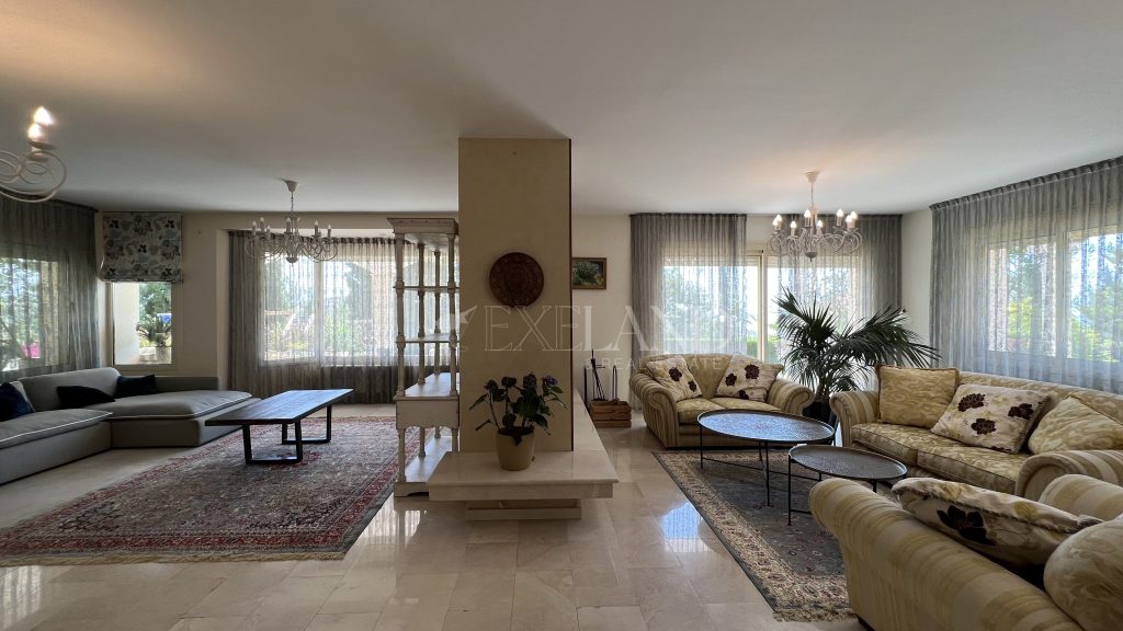 The 5-bedroom villa with spectacular views of the mountains, sea, and the city is located in the most prestigious area of Limassol, on one of the hills of Agios Tychonas. The covered area of the house is 495 sq.m, covered verandas 90sq.m, uncovered verandas 40sq.m, Land 1293sq.m. Pool size is 10 m to 4 m. The position of this villa is in harmony with its surroundings and has a large, carefully selected, gorgeous private garden with an irrigation system, patios, kid’s playground. The Villa has 4 floors - basement, ground floor, first floor, and attic. 5 bedrooms, four of them – en-suite, separate main kitchen, guest kitchen on the basement. The basement includes a large room with a bar, equipped with a home theatre system, billiards table, one bedroom with a bathroom and toilet, a laundry room, a small kitchen, and a sauna with a shower. There are two exits from the basement to the street. The basement can be used as a separate dwelling. The ground floor includes a living room with a working fireplace, an Italian fully equipped kitchen made of natural wood, equipment company Miele, guest WC, flooring - beige marble. Second floor: four bedrooms, three of which are equipped with a bathroom. There is also a storage room. Flooring - parquet. The third floor - the space under the roof, the size is 60 sq.m, currently used as an office, easily can be converted to the extra bedroom. Floors - laminate. All rooms are equipped with air conditioning cold/heat. All windows have electric shutters. All rooms are scattered over a lovely hillside, offering spectacular sea, mountain, and city view. The house is equipped with diesel central heating. The villa has a high-speed fiber internet connection. Also, there are 2 covered and 2 uncovered parking spaces.
