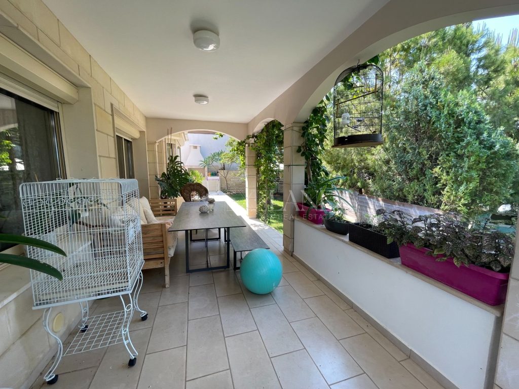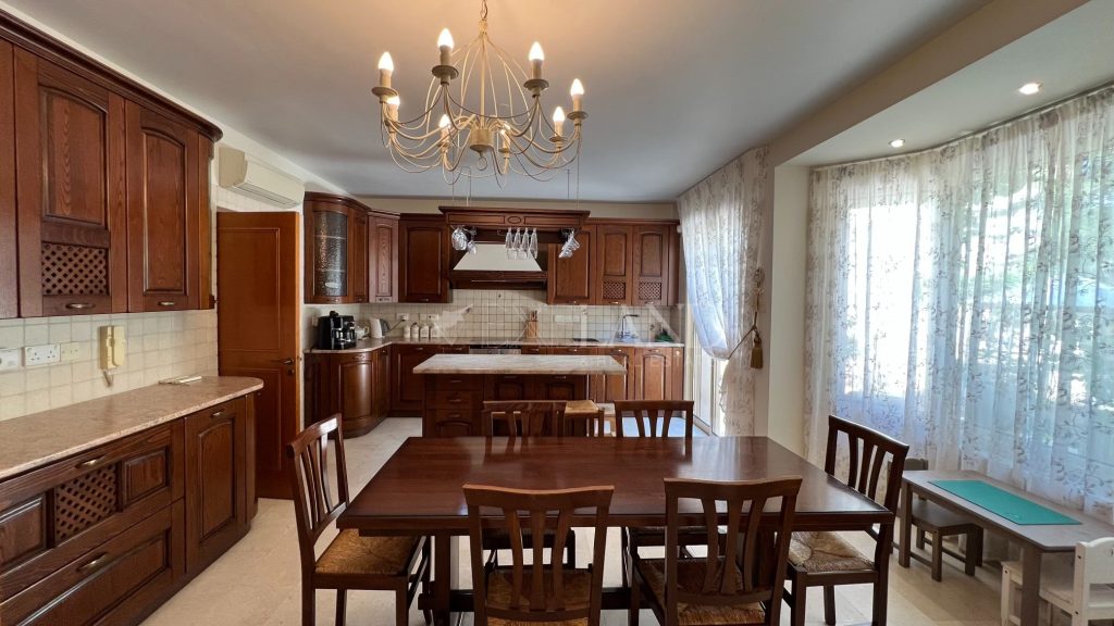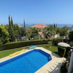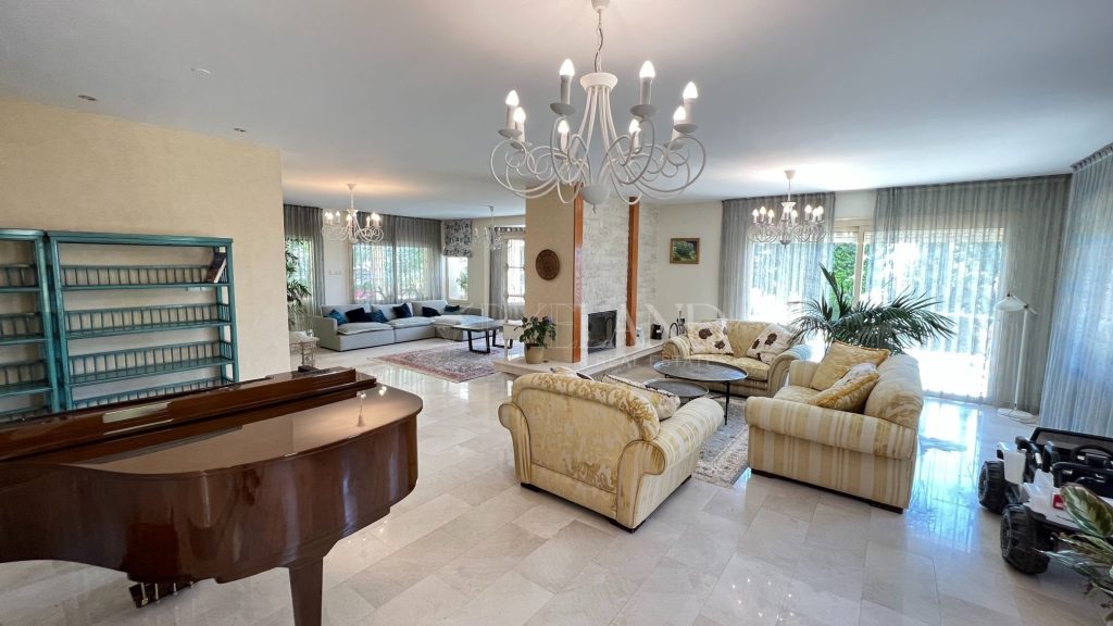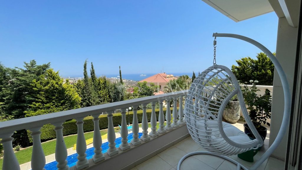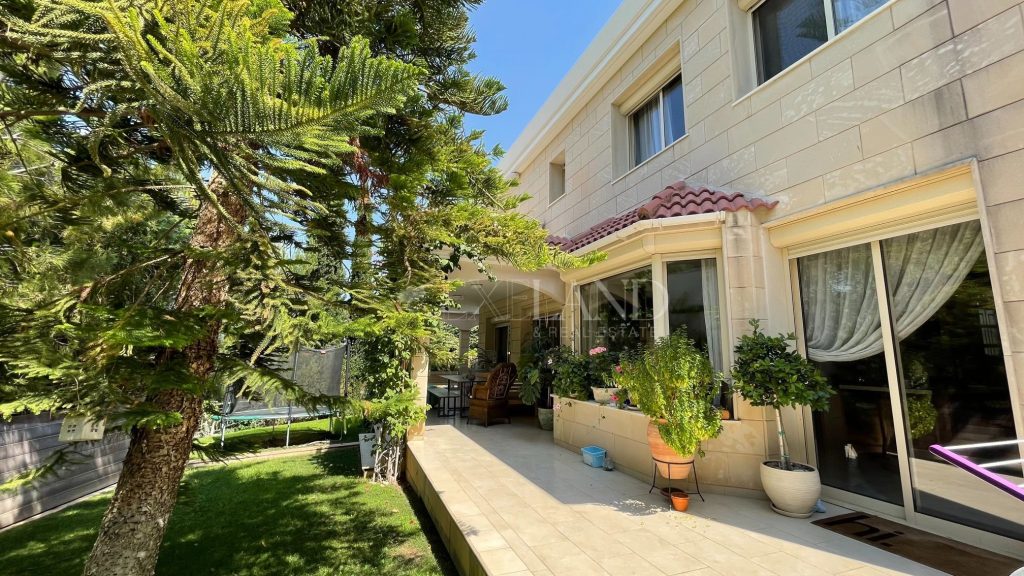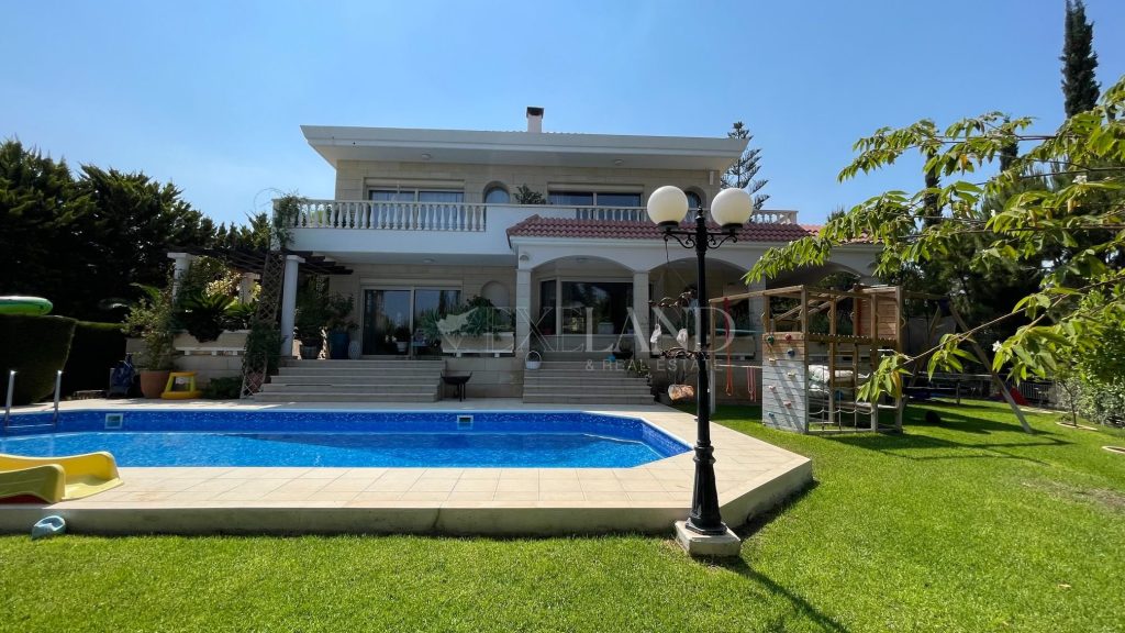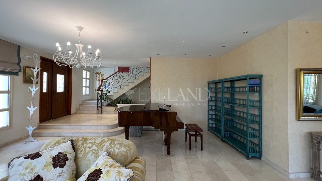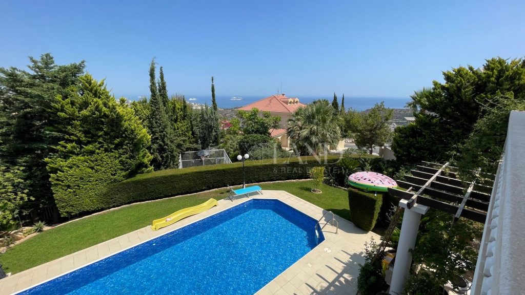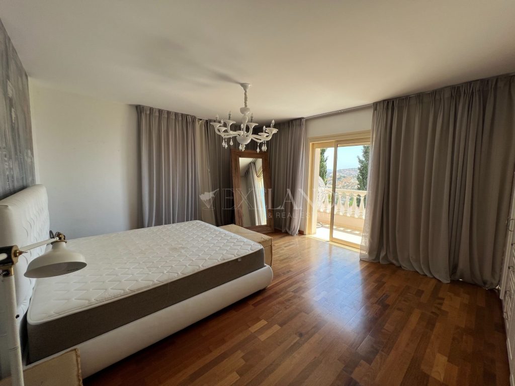 The 5-bedroom villa with spectacular views of the mountains, sea, and the city is located in the most prestigious area of Limassol, on one of the hills of Agios Tychonas. The covered area of the house is 495 sq.m, covered verandas 90sq.m, uncovered verandas 40sq.m, Land 1293sq.m. Pool size is 10 m to 4 m. The position of this villa is in harmony with its surroundings and has a large, carefully selected, gorgeous private garden with an irrigation system, patios, kid’s playground. The Villa has 4 floors - basement, ground floor, first floor, and attic. 5 bedrooms, four of them – en-suite, separate main kitchen, guest kitchen on the basement. The basement includes a large room with a bar, equipped with a home theatre system, billiards table, one bedroom with a bathroom and toilet, a laundry room, a small kitchen, and a sauna with a shower. There are two exits from the basement to the street. The basement can be used as a separate dwelling. The ground floor includes a living room with a working fireplace, an Italian fully equipped kitchen made of natural wood, equipment company Miele, guest WC, flooring - beige marble. Second floor: four bedrooms, three of which are equipped with a bathroom. There is also a storage room. Flooring - parquet. The third floor - the space under the roof, the size is 60 sq.m, currently used as an office, easily can be converted to the extra bedroom. Floors - laminate. All rooms are equipped with air conditioning cold/heat. All windows have electric shutters. All rooms are scattered over a lovely hillside, offering spectacular sea, mountain, and city view. The house is equipped with diesel central heating. The villa has a high-speed fiber internet connection. Also, there are 2 covered and 2 uncovered parking spaces.