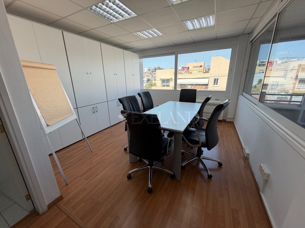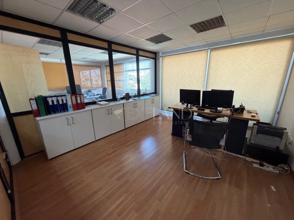 Spacious office space with city and mountains view located near Kolonakiou street, with an easy access to highway and amenities. Covered area is 270 sq. m and it consist of 2 reception areas, big open-plan area, server room, 3 separate offices, meeting area, 2 kitchens with 2 WC, covered veranda and uncovered veranda. It’s available unfurnished, with air conditioning units, structure cabling, laminate floor, double glazed windows, partitions and 2 underground parking places.
