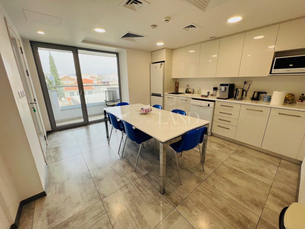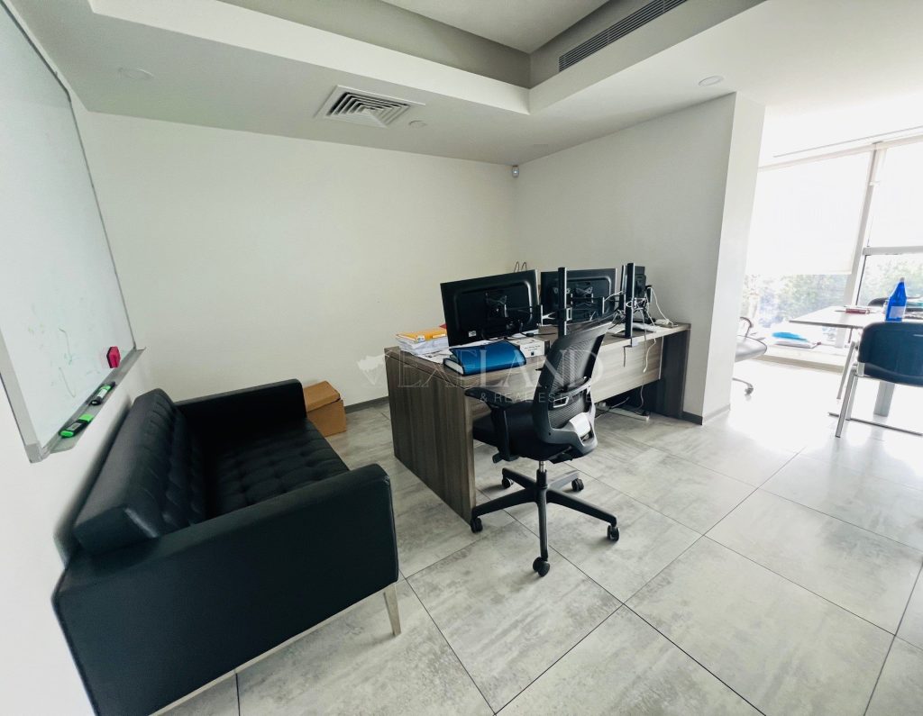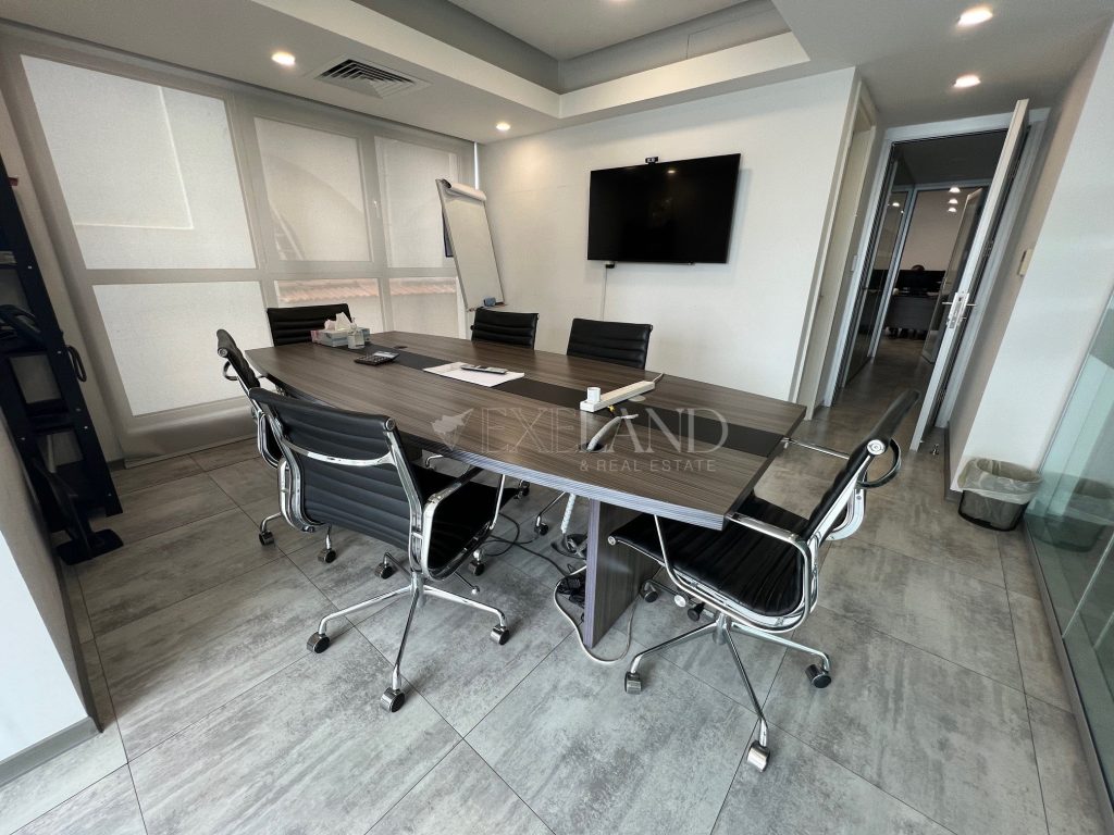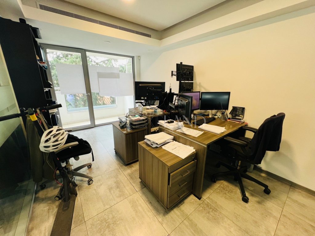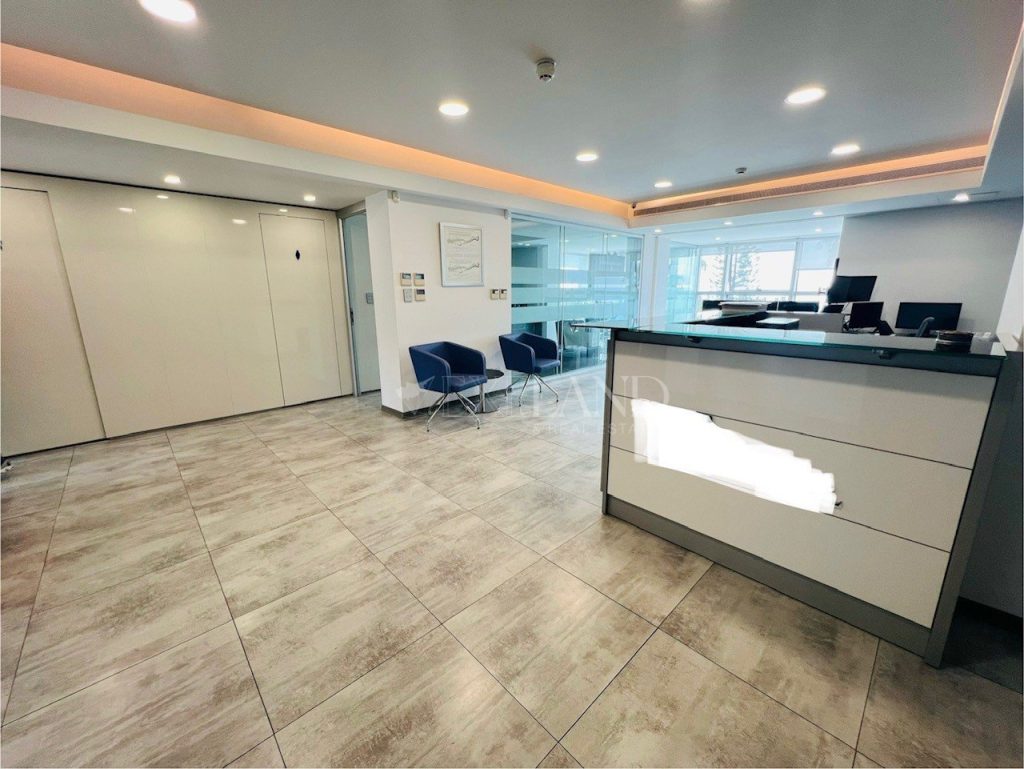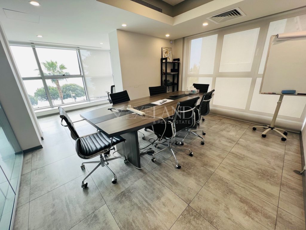 Office space with sea view located in a modern business center opposite Molos park, near Limassol Marina and walking distance to amenities. The covered area is 250 sq. m. It consists of an open-plan area with a reception, a meeting room, 4 separate offices with partitions, a separate kitchen, a server room, 4 WC and a covered balcony. The office is available unfurnished, with central air conditioning & fresh air system, structure cabling, alarm system, raised flooring and double-glazed windows with blinds. Also there are 2 covered parking spaces and opposite the office, there is municipal parking. The building has security at reception and a generator for electricity.
