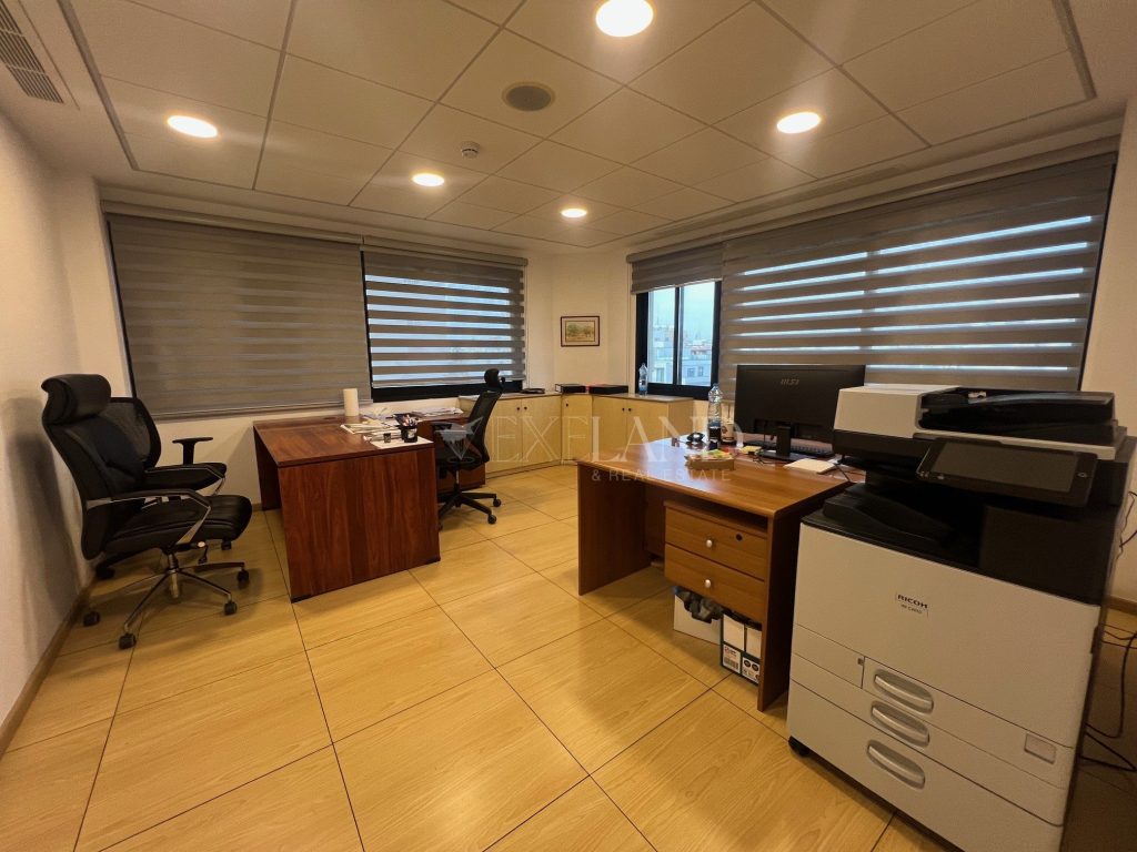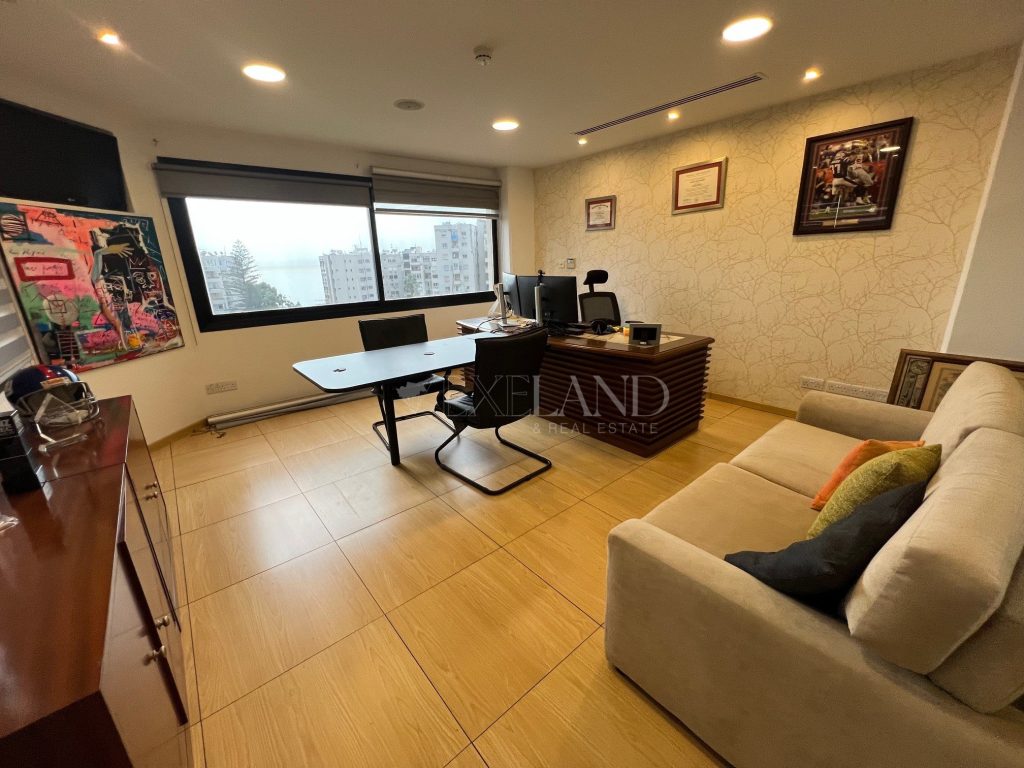 Spacious offices with a sea, city and montain views located in a business center in Neapols area, close to city center and within walking distance to all amenities. The total floor area is 527 sq. m and it consists of 2 offices: 266 sq. m + 261 sq. m. One office consists of a reception area, big conferece room, smaller meeting room, 6 separate offices, server room, storage space, separate kitchen with dining area and 2 WC. The second office consists of a big open-plan space, 4 separate offices, executive office with WC & shower, kitchenette, storage space, server room and 2 WC. The offices are available unfurnished, with a central air conditioning system with climate control, raised floor, double-glazed thermal windows, LED lighting, high-speed internet with sctuctured cabling, video intercom system, access control, security and fire alarm systems. The building has a main entrance lobby, 5 allocated parking places and electric gates with remote control. Title deeds are available.