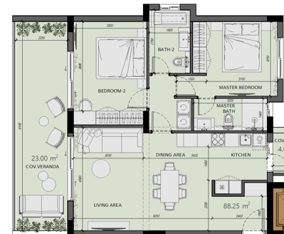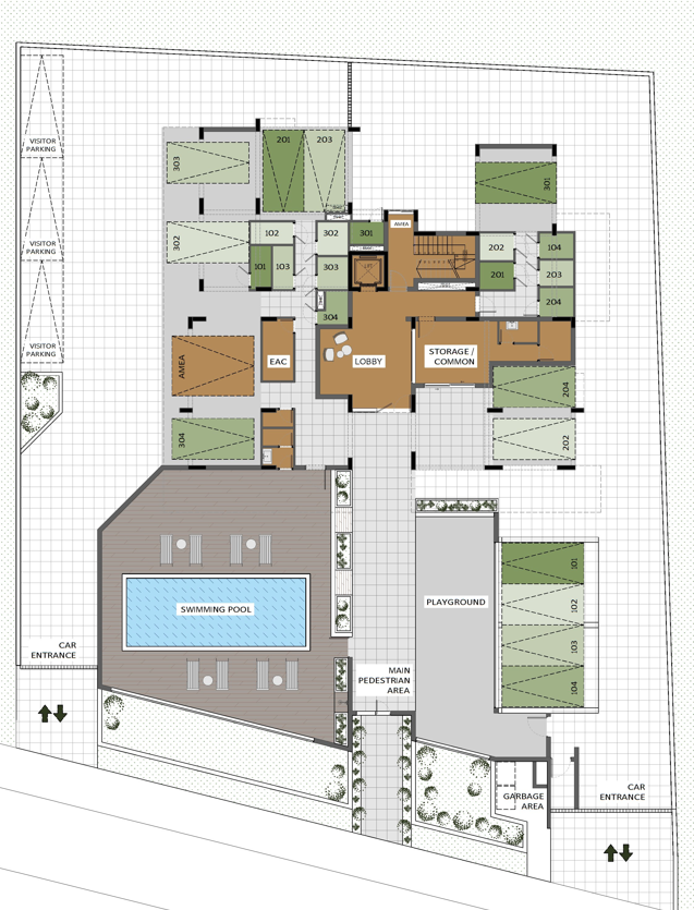 Комплекс предлагает такие удобства, как общий бассейн, благоустроенные сады, тренажерный зал, детская площадка.