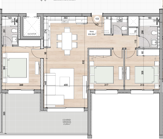 Современная трехкомнатная квартира, расположенная в районе Капсалос города Лимассол, недалеко от всей необходимой инфраструктуры. Квартира включает в себя кухню открытой планировки, соединенную с гостиной и столовой зоной, гостевой туалет, три спальни (одна из которых — главная) и ванную комнату.