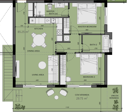Современная двухкомнатная квартира, расположенная в деревне Гермасойя с удобным и быстрым доступом к автомагистрали и городской инфраструктуре Лимассола.